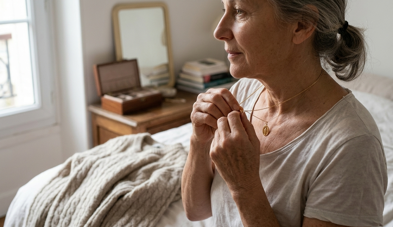 Si vous portez toujours votre pendentif sur vous et que vous enfilez ou retirez un gros pull, par exemple, le vêtement risque de s’accrocher dans le bijou et cela peut le casser. Vous pouvez garder un collier quand vous mettez un tee-shirt, mais redoublez de vigilance à chaque fois que vous portez un vêtement un peu plus compliqué à mettre ou à enlever, avec des éléments comme le col roulé qui représente des risques supplémentaires.